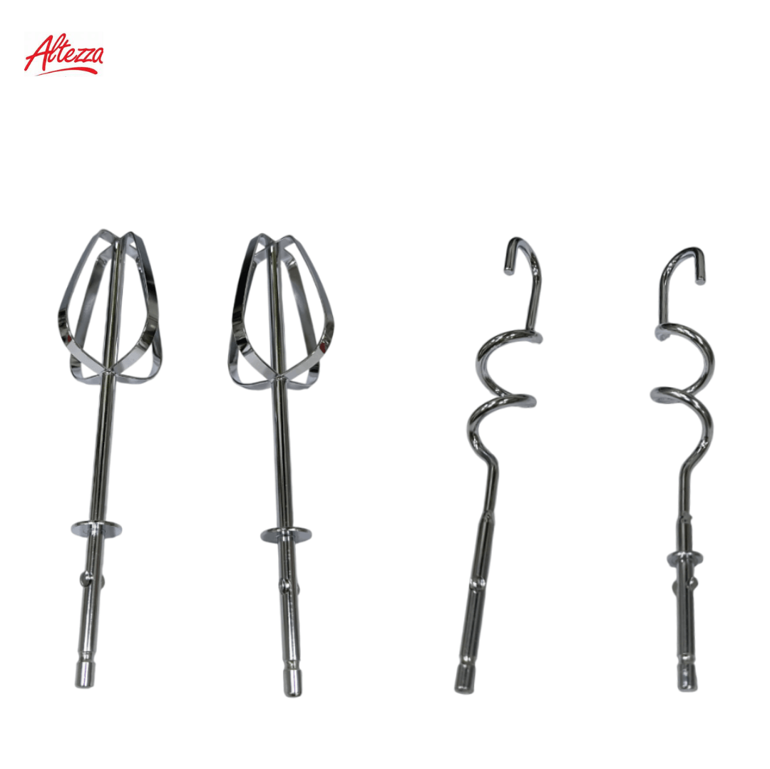 BATIDORA DE MANO ALTEZZA 5 VEL NEGRA AHM-414BL; ectrodoméstico portátil diseñado en plástico resistente con acabados modernos, con dimensiones de 8.5 cm de alto, 18.5 cm de ancho y 16.8 cm de largo. Incluye 5 niveles de velocidad para ajustar la potencia según cada preparación y cuenta con motor de 500W para un batido eficiente. Su color negro aporta elegancia y viene con juego de accesorios: dos varillas batidoras y dos ganchos amasadores intercambiables para mezclas ligeras o masas más densas. Es ideal para uso en la cocina en tareas como batir huevos, cremas, mezclas de repostería o masas básicas. Gracias a su diseño ligero y ergonómico ofrece un manejo cómodo, fácil limpieza y almacenamiento práctico después de cada uso.