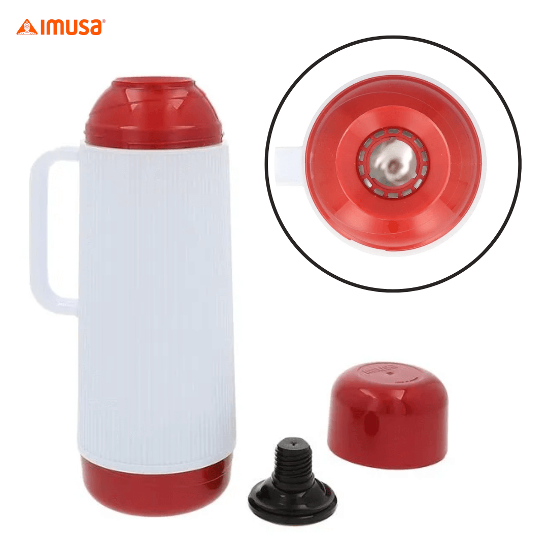CAJA DE TERMO IMUSA LISO 1 LITROS X 9 UNIDADES;; Caja de termos marca Imusa, modelo liso, con capacidad de 1 litro cada uno. Fabricados con materiales resistentes y duraderos, ideales para conservar bebidas calientes o frías por varias horas. Su diseño clásico y ergonómico permite un fácil manejo y transporte, siendo perfecto para uso diario en el hogar, oficina, viajes o actividades al aire libre. Incluye 9 unidades por caja, ideal para ventas al por mayor o abastecimiento institucional.