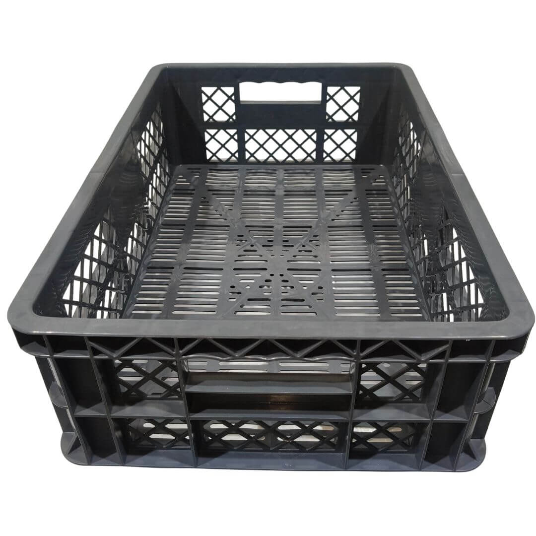 fabricado en plástico de alta resistencia tipo polipropileno, con dimensiones aproximadas de 17 cm de alto, 60 cm de ancho, 40 cm de largo, capacidad aproximada de 40 litros, soporta hasta 25kg de peso.