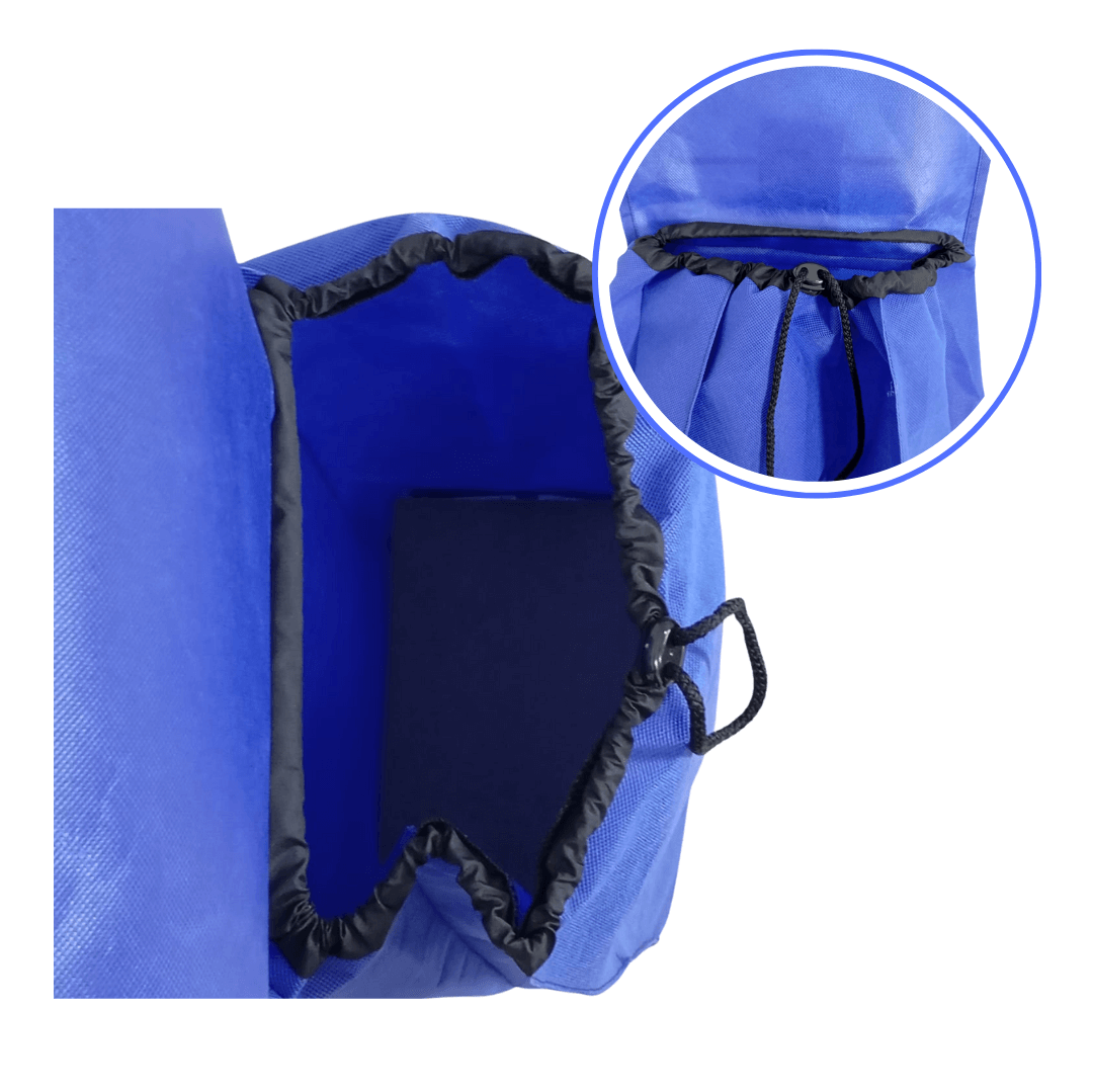 La bolsa principal es amplia, elaborada en tela sintética duradera, ideal para transportar compras, víveres o artículos personales. Posee una solapa superior que protege el contenido del polvo o la lluvia.