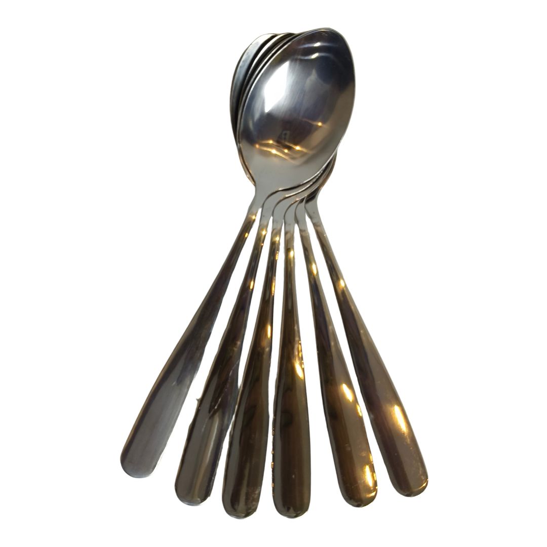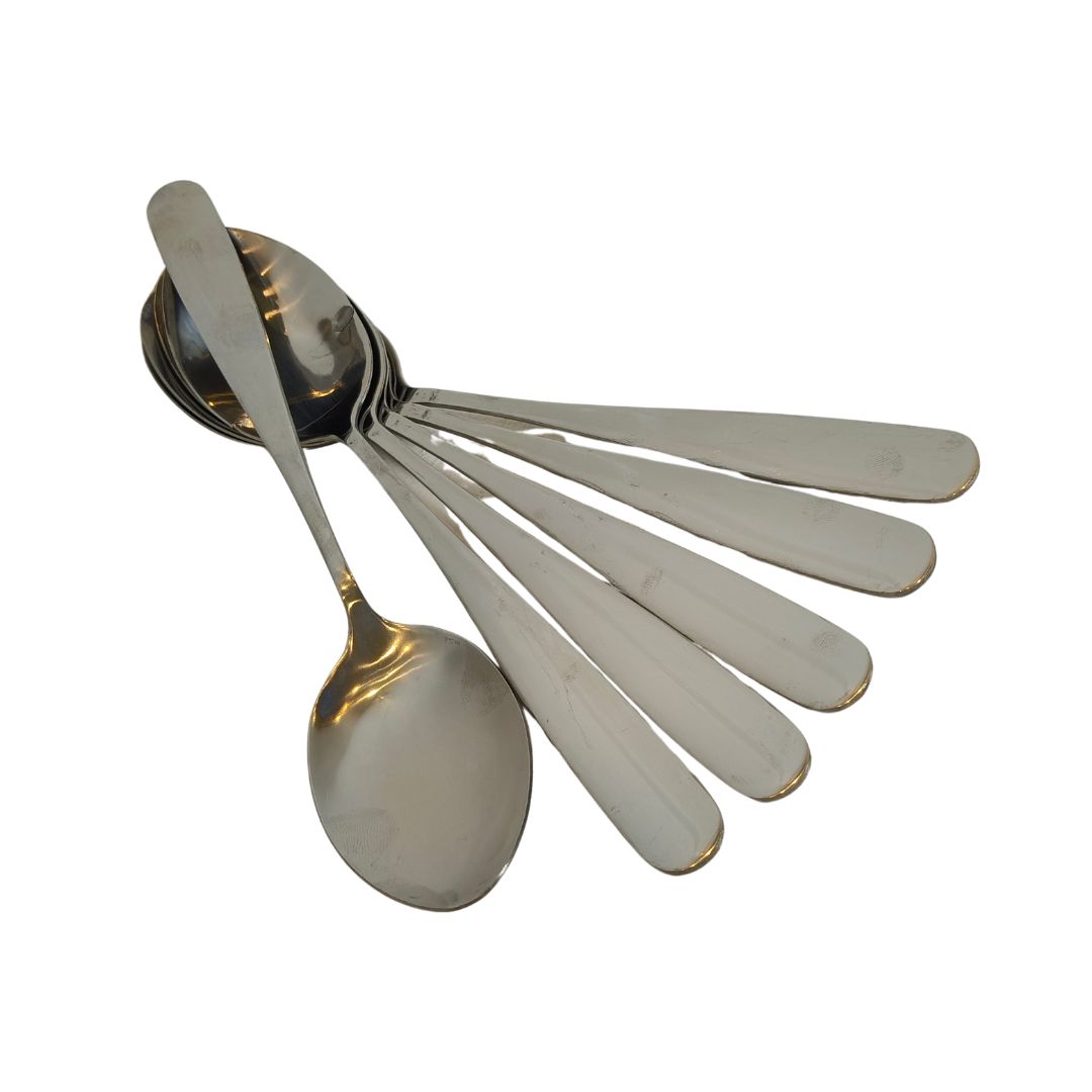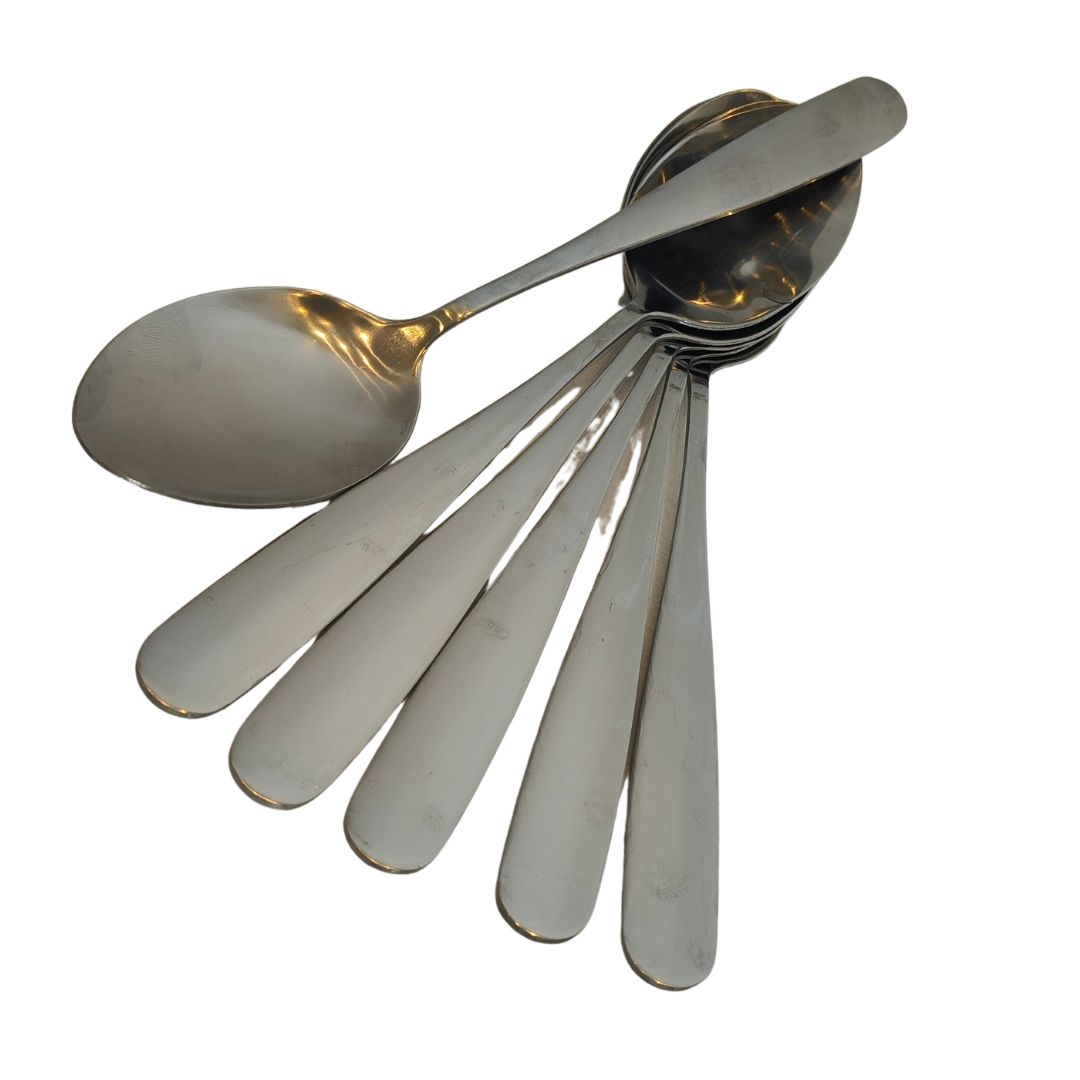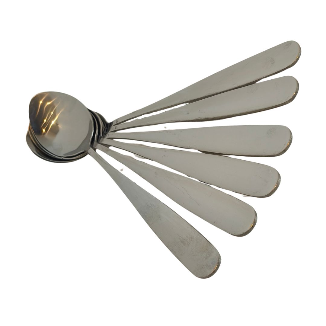 set portátil de 6 piezas fabricadas en acero inoxidable pulido resistente a la corrosión, por unidad de 20 cm de largo, 4.5 cm de ancho y 2 cm de profundidad en la cavidad, utensilios ideales para sopa, arroz, cereales y alimentos líquidos o semisólidos.