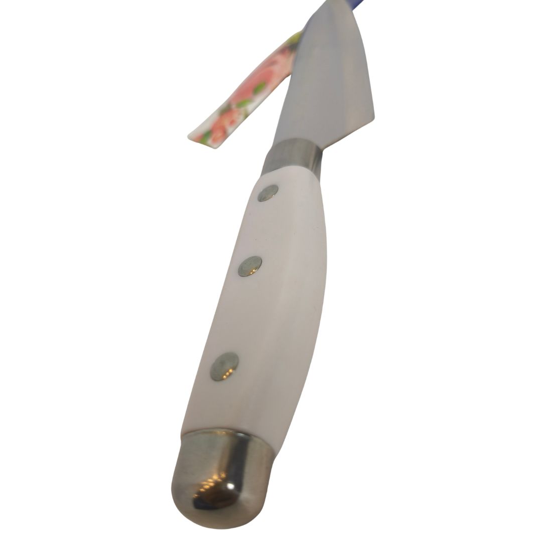 fabricado con hoja lisa en acero inoxidable y mango ergonómico en plástico resistente con remaches metálicos, 4 cm de alto, 2 cm de ancho y 29 cm de largo total (hoja de 12,7 cm / 5 pulgadas) ideal para cortar carnes, verduras y alimentos de textura firme en cocina doméstica o profesional.
