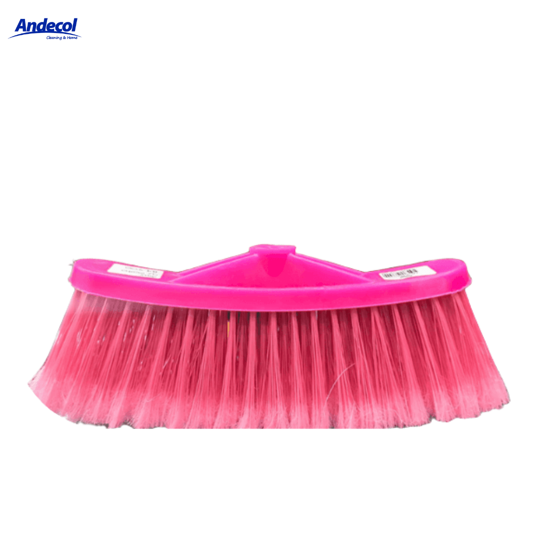ESCOBA Z PLUS FLUO 18 ANDECOL REF MP0720; fabricada en plástico resistente con cerdas sintéticas de alta durabilidad, diseñada para ofrecer un barrido eficiente en distintas superficies. Presenta dimensiones de 4 cm de alto, 25 cm de ancho y 10 cm de largo, en color fucsia intenso, con un peso aproximado de 0.4 kg. Su estructura compacta y tipo de producto fijo y portátil cuenta con cerdas densas que permiten recoger polvo fino y partículas más pesadas sin esfuerzo. Ideal para uso doméstico o institucional en pisos de cocina, sala, corredores, oficinas o patios, asegurando un barrido uniforme. Se recomienda usar con mango estándar y limpiar las cerdas periódicamente con agua y jabón para prolongar su vida útil y mantener su rendimiento.