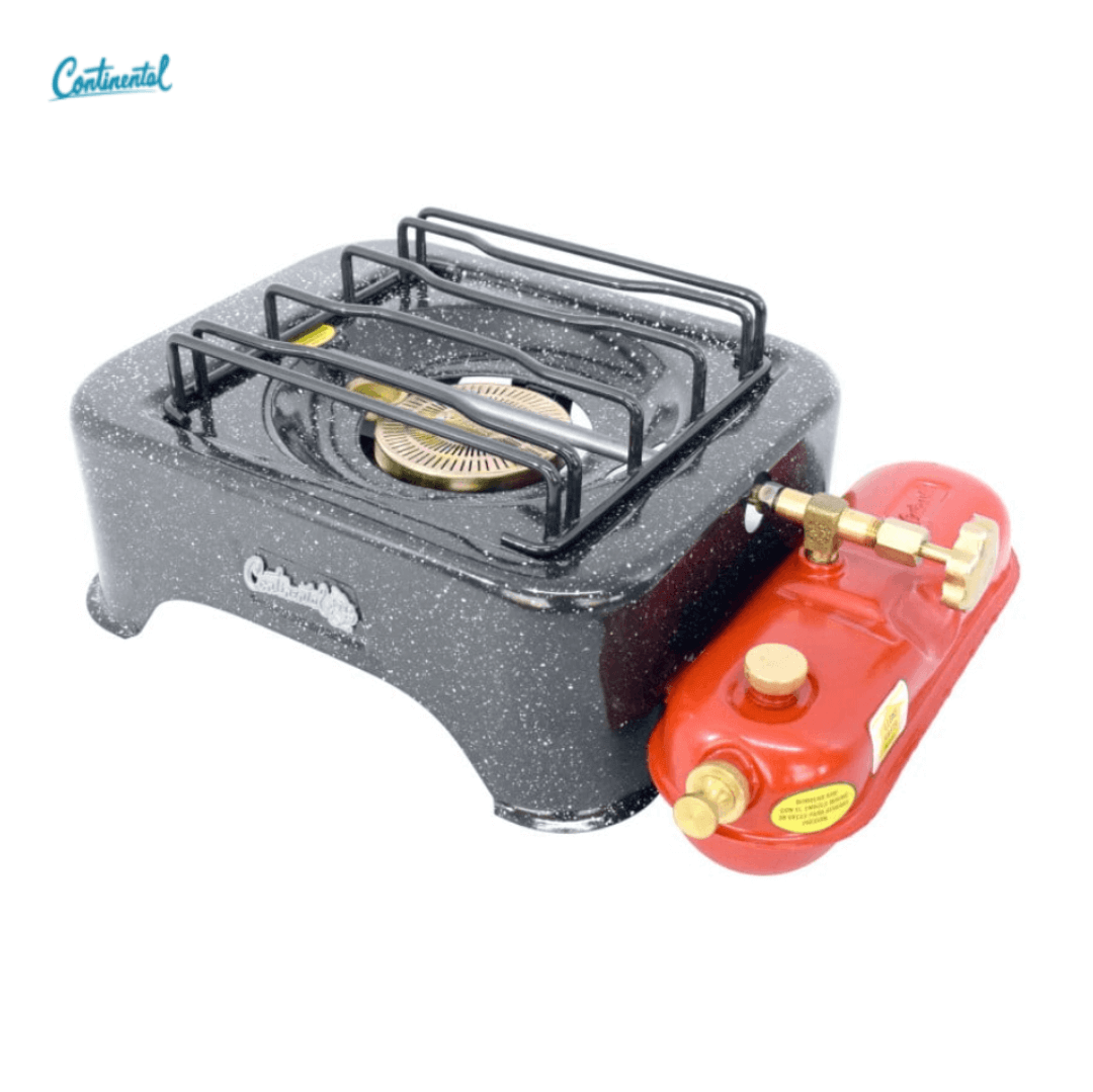 ESTUFA REF 6019 1 PUESTO GASOLINA CONTINENTAL; Mide 25,5 cm de alto, 37,5 cm de ancho y 14,7 cm de fondo, portátil de alta resistencia fabricada en acero cold rolled calibre 24 esmaltado, con tanque metálico de 0,75 litros integrado mediante soldadura de precisión que evita fugas de combustible.con acabado negro moteado y depósito rojo. Pesa 3 kg, ofreciendo estabilidad y durabilidad. Ideal para uso doméstico, camping o labores al aire libre, garantiza un calentamiento uniforme y seguro gracias a su quemador de alta eficiencia. Requiere gasolina corriente y debe utilizarse en espacios ventilados sobre superficies planas y resistentes al calor.