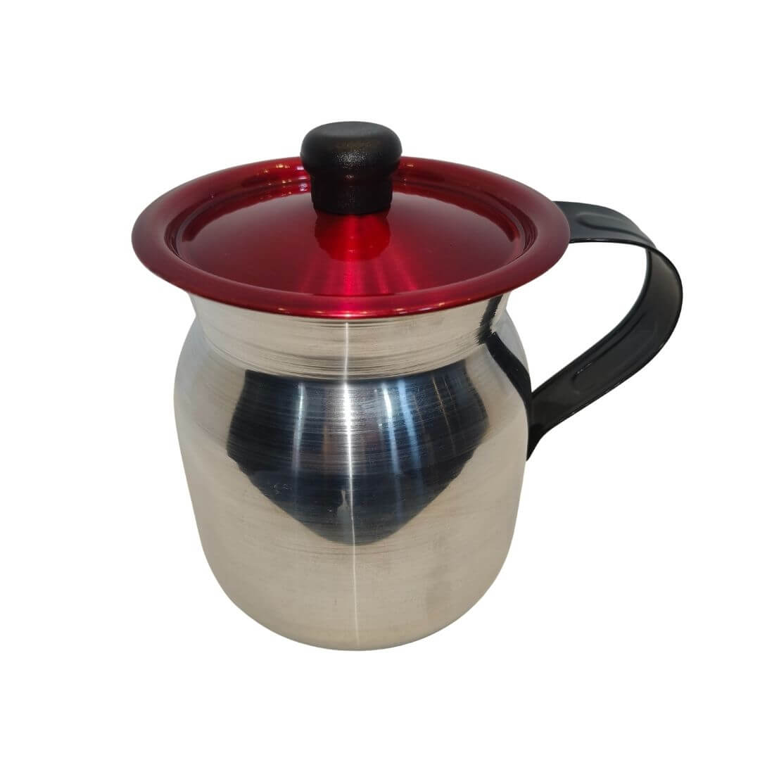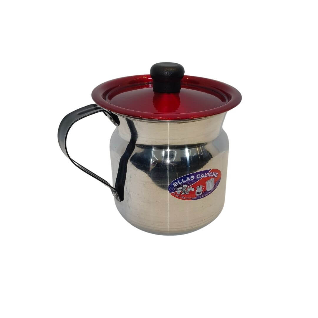JARRA CHOCOLATERA CALICHE 3 LTS CON TAPA DE ALUMINIO, jarra tradicional de uso doméstico fabricada en aluminio pulido de alta resistencia, ideal para preparar y servir chocolate, café, agua de panela u otras bebidas calientes. Presenta dimensiones de 15,5 cm de alto, 13,5 cm de ancho y 17 cm de largo, en color aluminio natural con tapa superior de aluminio y pomo plástico resistente al calor. , ideal para preparar y servir chocolate, café, agua de panela u otras bebidas calientes.