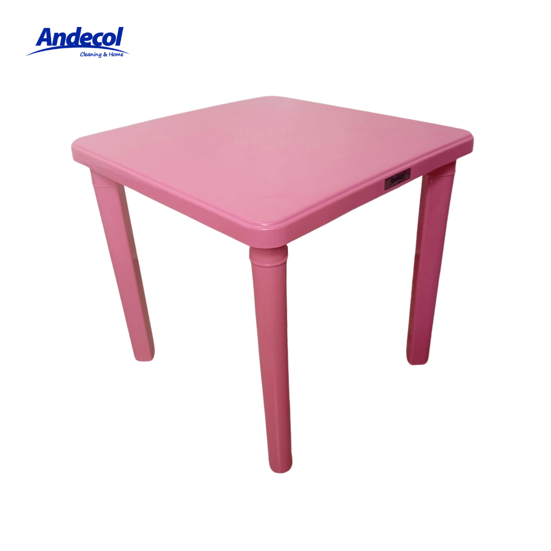 MESA KINDER ROSADA ANDECOL REF: MP1076;  Mesa Kinder  ROSADO Andecol, fabricada en plástico de alta calidad en polipropileno, con dimensiones de 51 cm de alto, 56 cm de ancho y 56 cm de largo, Cuenta con un nivel y capacidad para 4 puestos, ideal para actividades escolares, recreativas o didácticas para niños. Es un producto portátil y liviano, fácil de mover y de limpiar gracias a su superficie lisa. Su material resistente permite usarla en salones infantiles, jardines, hogares, terrazas o zonas de juego, ofreciendo un espacio estable y seguro para estudiar, jugar o realizar ACTIVIDADES.