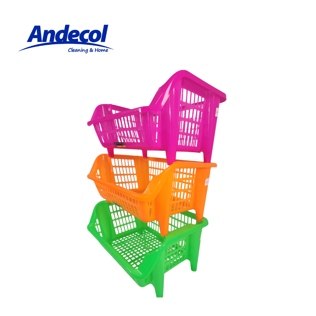 Multiestante apilable, ideal para organizar frutas y verduras; su textura abierta permite que los alimentos se mantengan frescos. Fácil de armar y limpiar. Úsala en cocina, baños, cuartos de niños o como organizador auxiliar