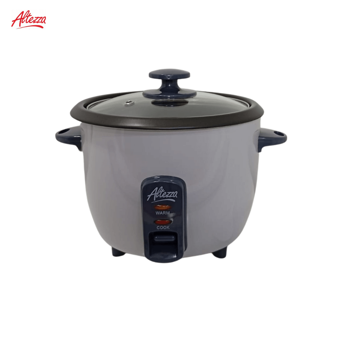 OLLA MULTIFUNCIONAL ALTEZZA 5 TAZAS 1 LITRO GRIS REF; ARC-1G 121090; olla eléctrica portátil de uso doméstico fabricada en metal con recipiente interior antiadherente y tapa de vidrio templado, con dimensiones aproximadas de 22 cm de alto, 24 cm de ancho y 24 cm de largo, color gris con detalles en negro, marca Altezza, con un único compartimiento de cocción integrado. Cuenta con una capacidad de 1 litro equivalente a 5 tazas, potencia de 400 W y placa calefactora interna que garantiza uniformidad en la cocción. Incorpora control de cocción con funciones Warm y Cook, ideal para preparar arroz, sopas, guisos y alimentos básicos. Su diseño compacto y portátil permite ubicarla fácilmente sobre superficies planas de la cocina. Se recomienda utilizarla exclusivamente en interiores, conectada a red eléctrica, evitando el contacto con agua en la base y manteniéndola fuera del alcance de los niños para un uso seguro y eficiente.