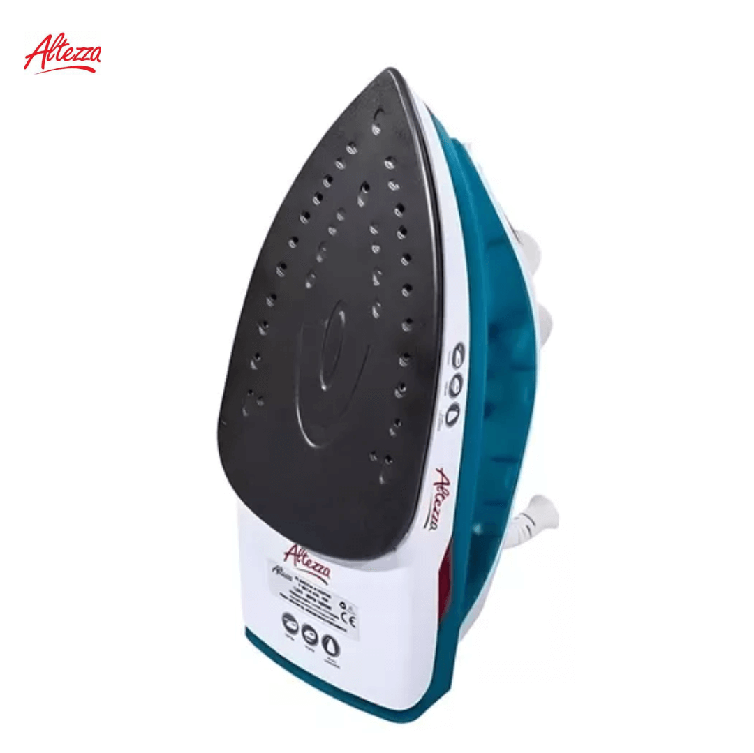 PLANCHA ALTEZZA VAPOR Y SECA 1000W 13 SALIDAS AZUL REF: 43833; De color azul y blanco, con dimensiones de 11.5 cm de alto, 26 cm de ancho y 14 cm de largo, ofrece hasta 100 salidas de vapor para eliminar arrugas con precisiónplancha eléctrica de vapor horizontal fabricada con base antiadherente de alta durabilidad que asegura un deslizamiento uniforme sobre todo tipo de tela. Posee un depósito con capacidad de 160 ml, potencia de 1000 W y rango de voltaje entre 110 V y 120 V, brindando un calentamiento rápido y eficiente. Su diseño ergonómico y peso liviano de 0.5 kg facilitan el manejo y reducen el esfuerzo durante el planchado. Ideal para uso doméstico en lavandería, permite un planchado cómodo, seguro y resultados impecables en menos tiempo.
