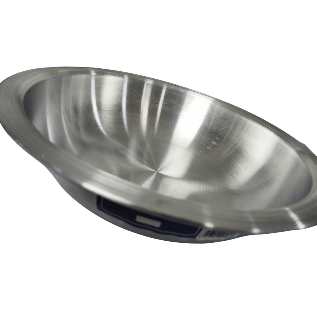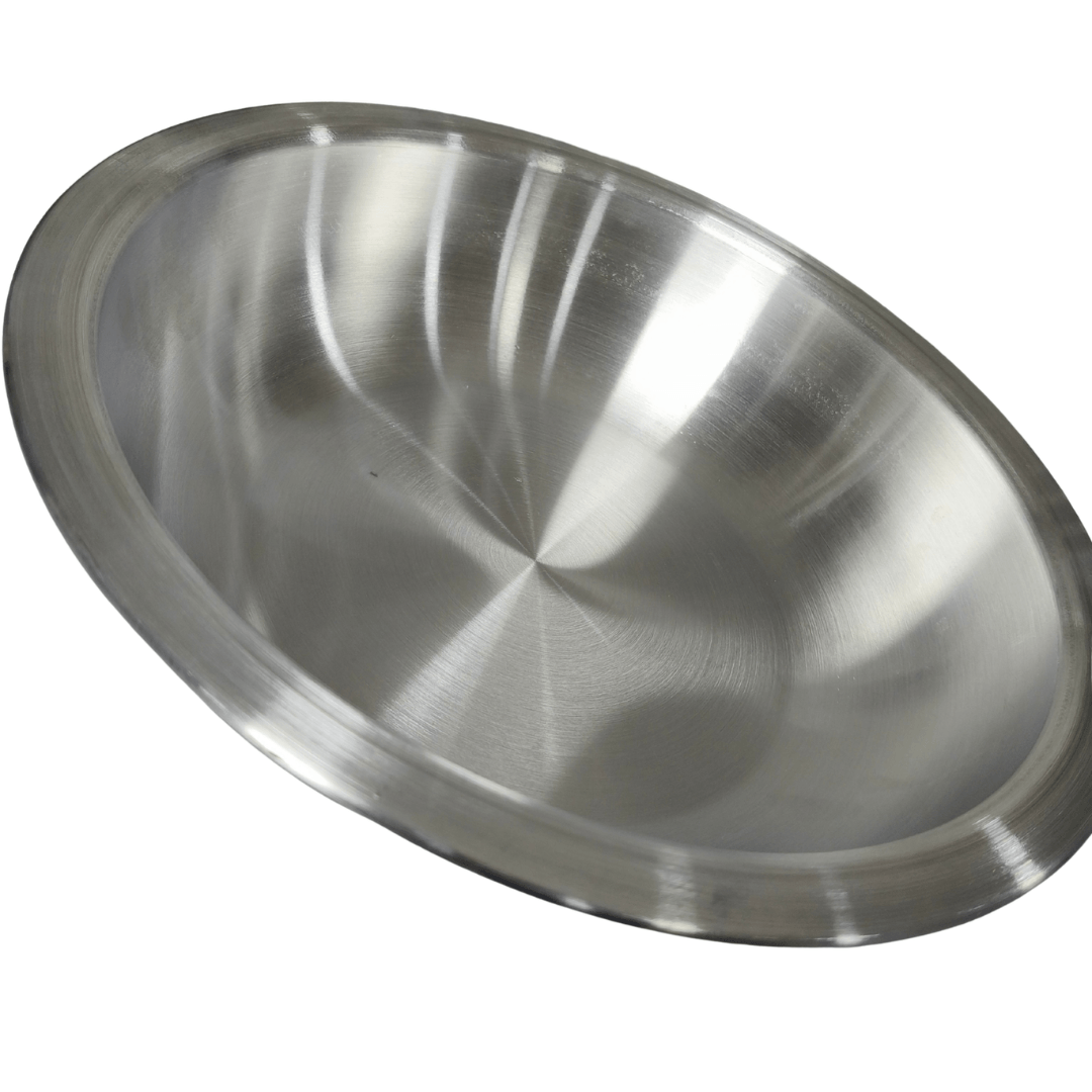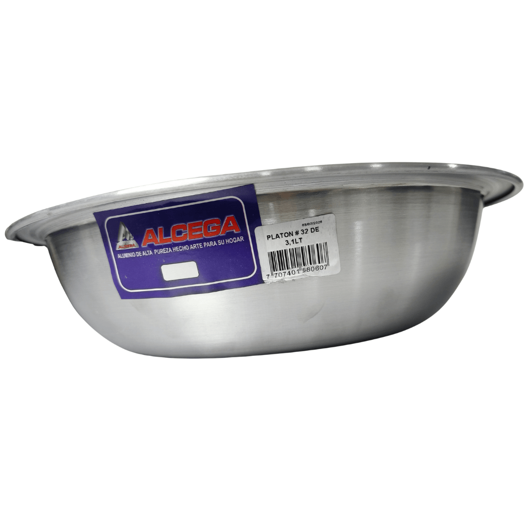 Fabricado en aluminio pulido de alta resistencia a la corrosión, con dimensiones aproximadas de 7.5 cm de alto, 32 cm de ancho, 32 cm de largo, capacidad aproximada de 3.1 litros. Ideal para mezclar, servir o almacenar alimentos gracias a su estructura liviana y fácil de limpiar