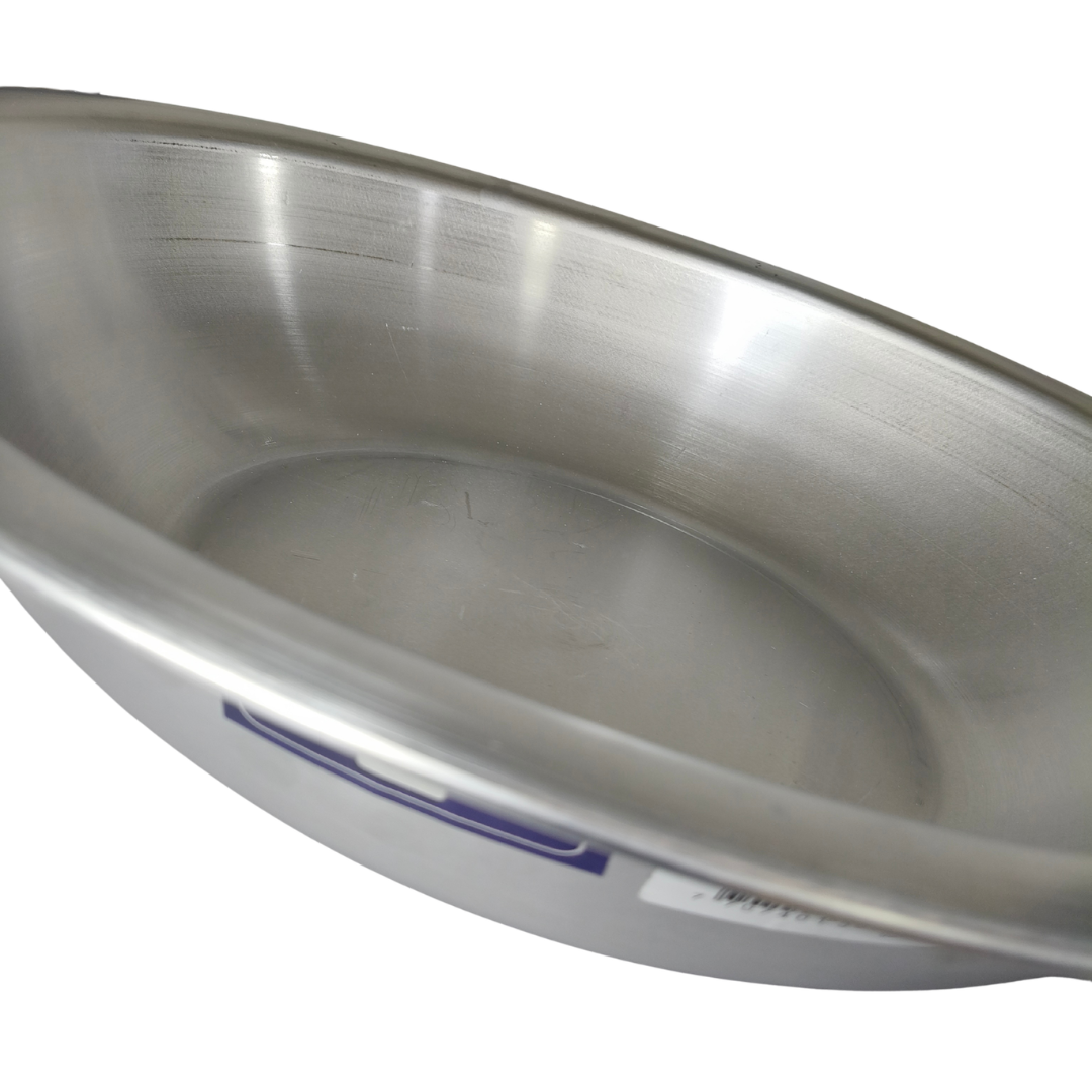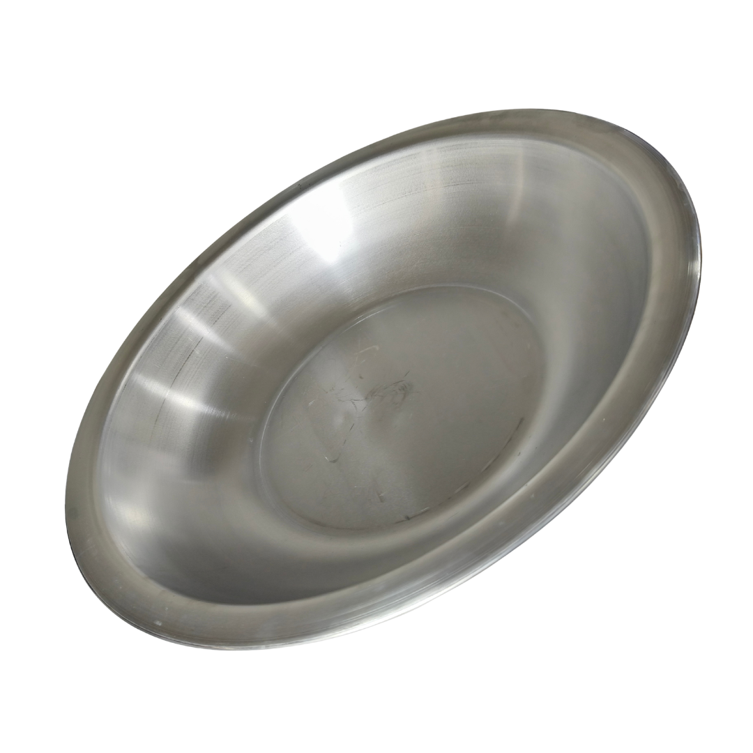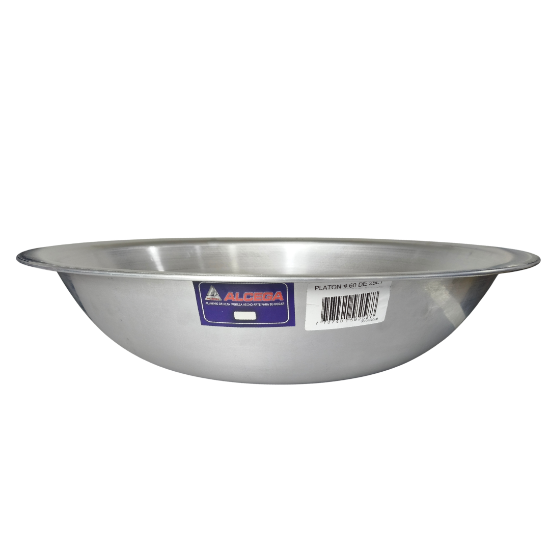 fabricado en acero inoxidable resistente a la corrosión, con dimensiones aproximadas de 13.5 cm de alto, 60 cm de ancho, 60 cm de largo, capacidad aproximada de 25 litros. Ideal para mezclar, servir o almacenar alimentos gracias a su estructura liviana y fácil de limpiar