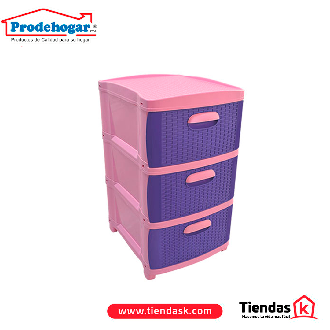 PRACTIMUEBLE DUBAI 3 NIVELES BEIGS – ROSADO RATTAN PRODEHOGAR REF 390ORR3N18