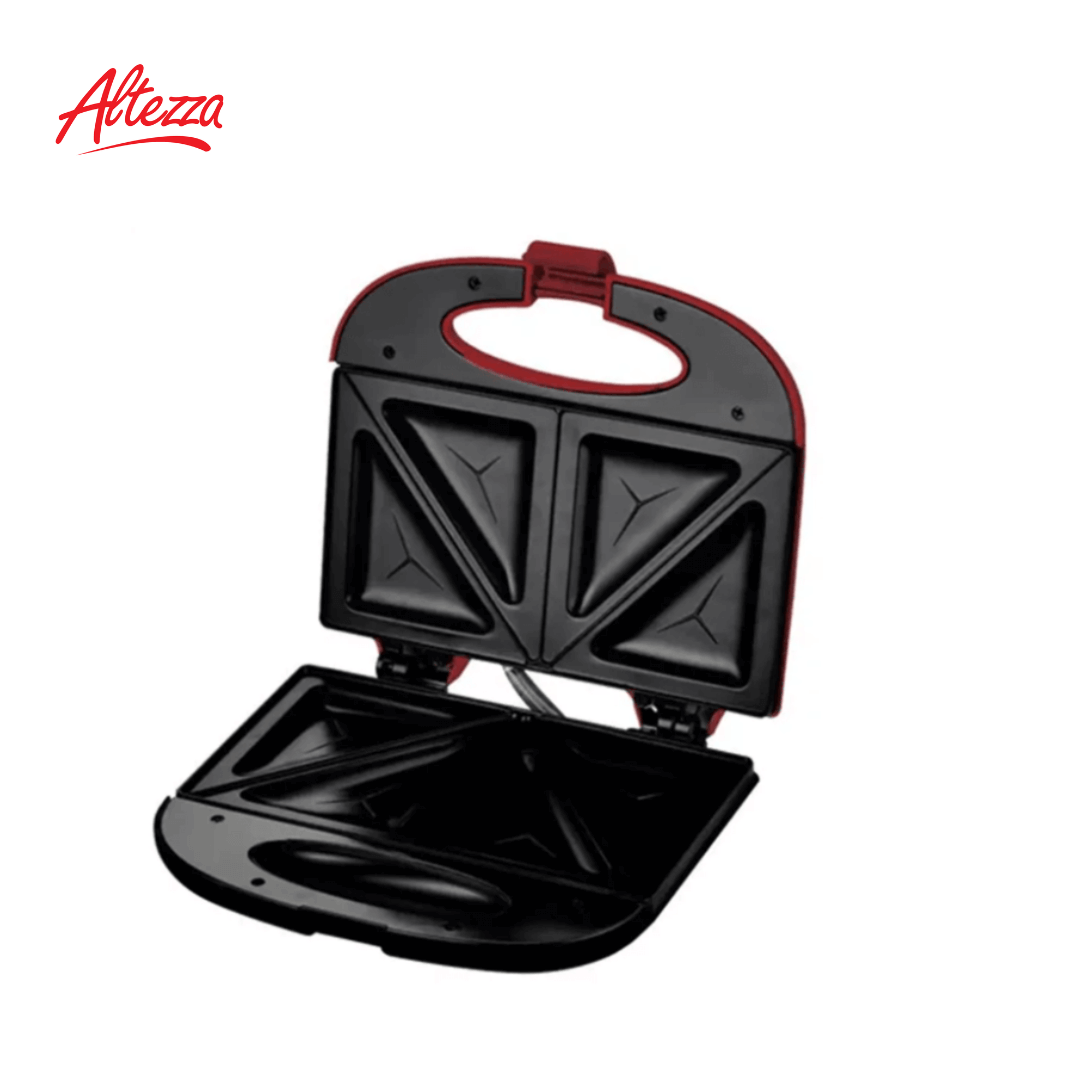 SANDUCHERA ALTEZZA DOS PUESTOS ROJA REF 45694 ASM-817R; Posee dimensiones de 10 cm de alto, 24 cm de ancho y 23 cm de largo, con un peso de 1.1 kg y diseño compacto en color negro ideal para cocinas domésticas. práctica y funcional, fabricada con carcasa en plástico termo resistente y placas internas antiadherentes de alta durabilidad que permiten preparar hasta dos sándwiches a la vez sin que se peguen los ingredientes.Cuenta con luz piloto indicadora de encendido, sistema de bloqueo de tapa, base antideslizante y porta cable integrado para fácil almacenamiento. Perfecta para uso en la cocina del hogar o espacios pequeños, permite elaborar sándwiches dorados y crujientes en pocos minutos, facilitando una limpieza rápida con solo pasar un paño húmedo