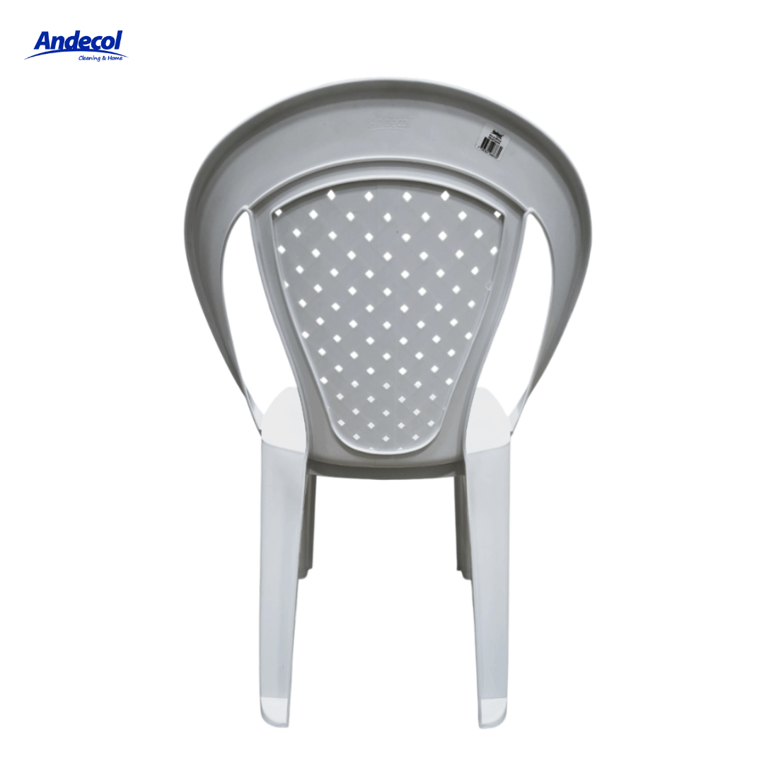 SILLA EPIKA ADULTO BLANCO ORIGINAL REF MP0259; fabricada en plástico de alta calidad en polipropileno, con dimensiones de 89 cm de alto, 56 cm de ancho y 57 cm de largo. Presenta un diseño monoblock sin niveles ni compartimientos, con capacidad para una persona adulta y estructura tipo tejido maya que mejora la ventilación y comodidad. Su color blanco aporta un toque moderno y vibrante y sofisticado, ideal para uso en interiores o exteriores como terrazas, patios, jardines, balcones o áreas sociales. Es ligera, resistente a la intemperie y fácil de limpiar; se recomienda lavar con agua y jabón suave, evitar sobrecargarla y conservarla en superficies firmes para mayor estabilidad y durabilidad.
