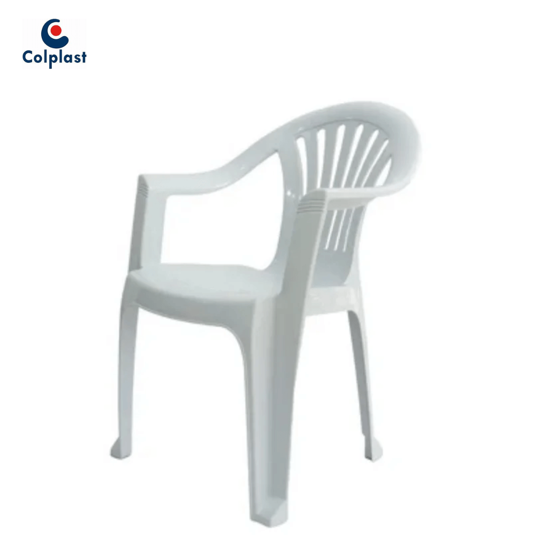 SILLA OASIS ESPALDAR LINEAL COLPLAST BLANCO REF: 072:; Cuenta con dimensiones aproximadas de 79 cm de alto, 55 cm de ancho y 59 cm de largo, diseñada con espaldar lineal para mejorar la ventilación y brindar soporte ergonómico. fabricada en plástico resistente tipo polipropileno peletizado con acabado brillante, en color BLANCO No posee niveles ni compartimientos y su capacidad es de una persona adulta con soporte estable. Es un producto portátil, ligero y fácil de trasladar, ideal para uso en interiores y exteriores como patios, terrazas, jardines, salas de espera o comedores. Se recomienda utilizar sobre superficies planas, evitar exposición prolongada al sol para conservar el color y limpiar con paño húmedo o agua y jabón neutro para mantener su brillo y durabilidad