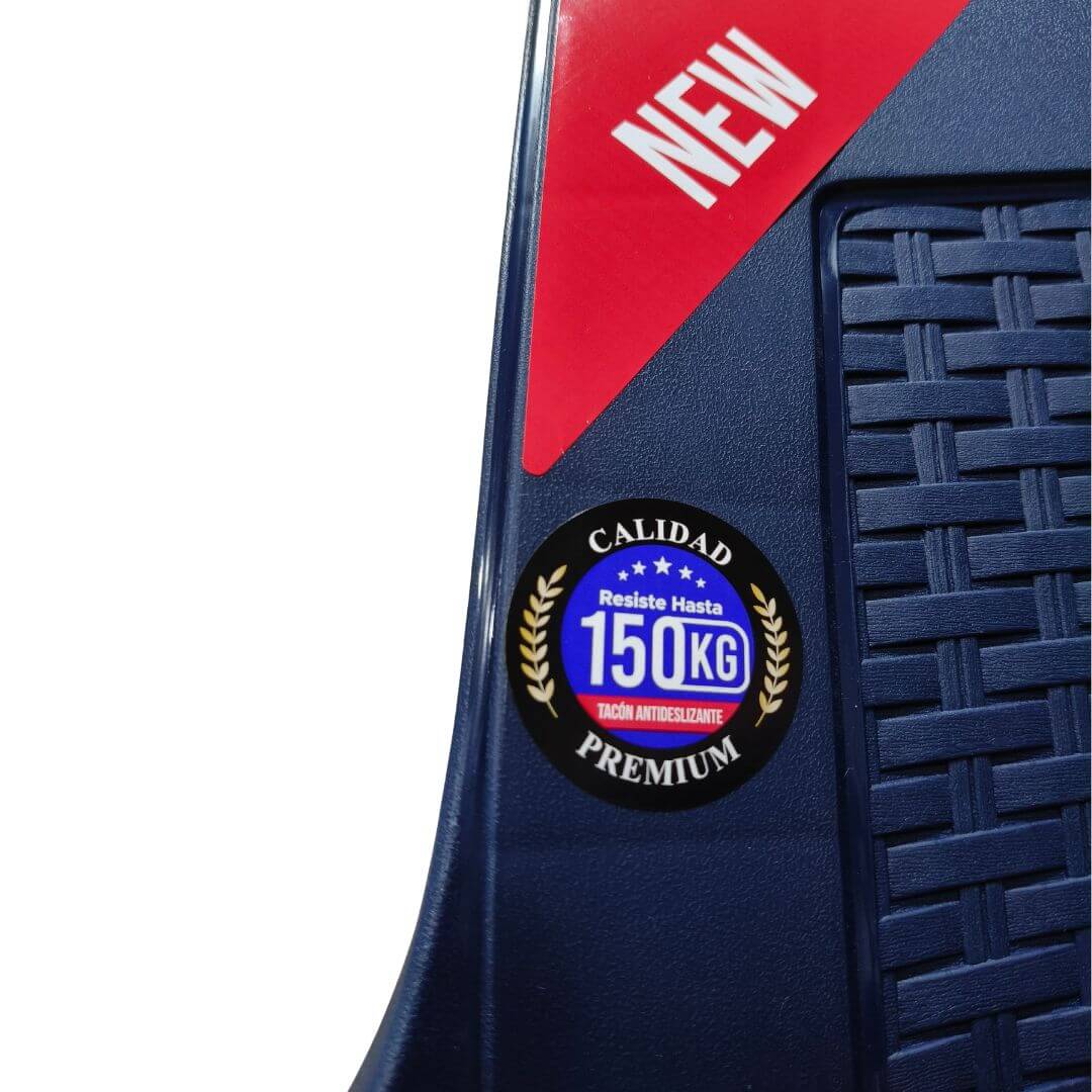 fabricada en polipropileno de alta resistencia con respaldo y asiento texturizado tipo ratán con dimensiones 85 cm de alto total, 55 cm de ancho, 55 cm de largo y altura del asiento de 45 cm, soporta hasta 100 kg. Ideal para uso en exteriores e interiores como terraza, jardín, balcón o comedor, resistente a la humedad y fácil de limpiar.