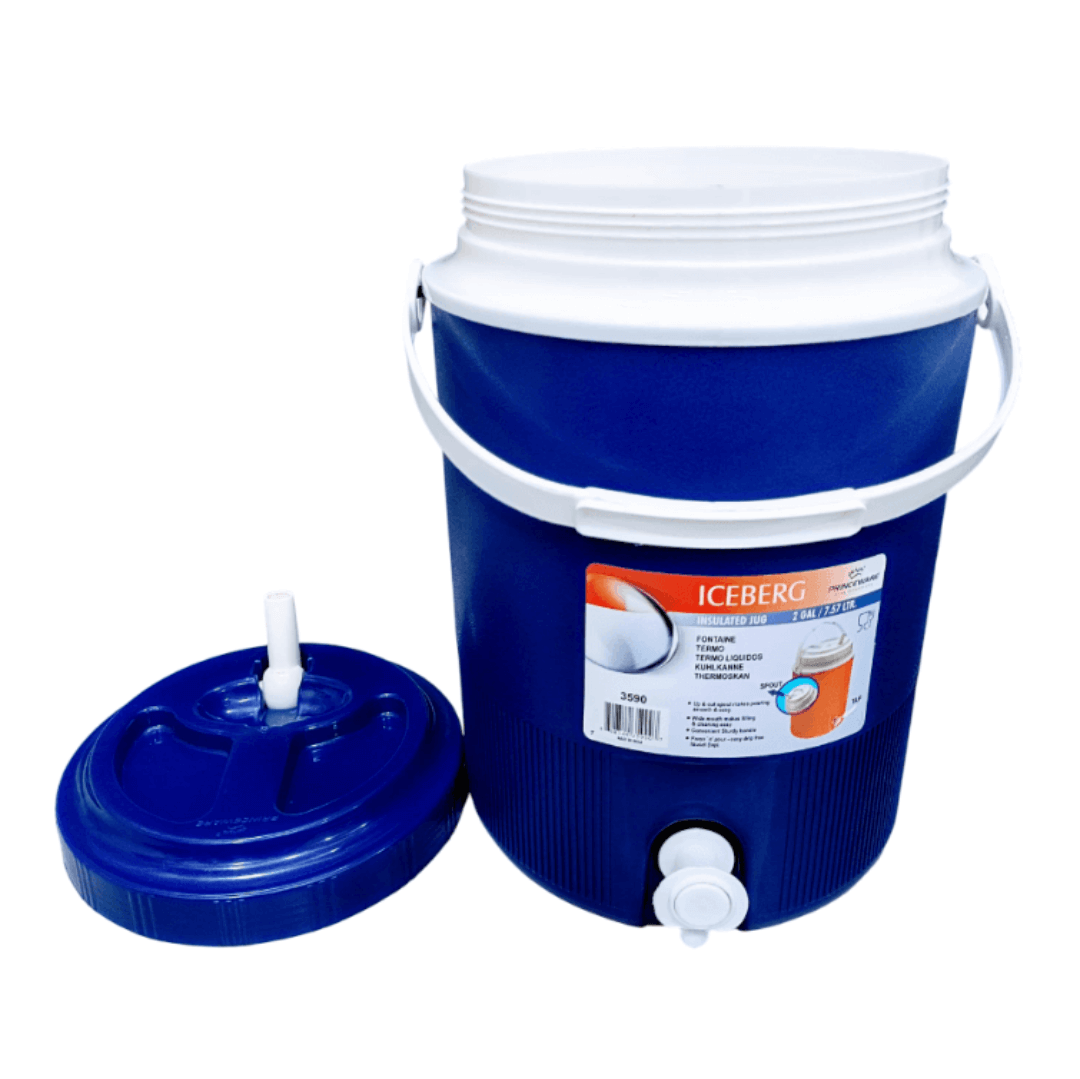 TERMO ICEBERG 7 LITROS REF PRINCE 3590; el termo Iceberg de 7 litros (Ref. Prince 3511) es tu compañero ideal para mantener bebidas frías donde sea que estés. Su diseño ergonómico y tapa segura lo hacen perfecto para uso individual, sin perder capacidad ni rendimiento, capacidad: 7 litros formato práctico y portátil, fabricado en plástico resistente al impacto, y apa roscada con boquilla tipo chorro , conservación térmica eficiente para líquidos fríos y recomendado para uso individual diario.