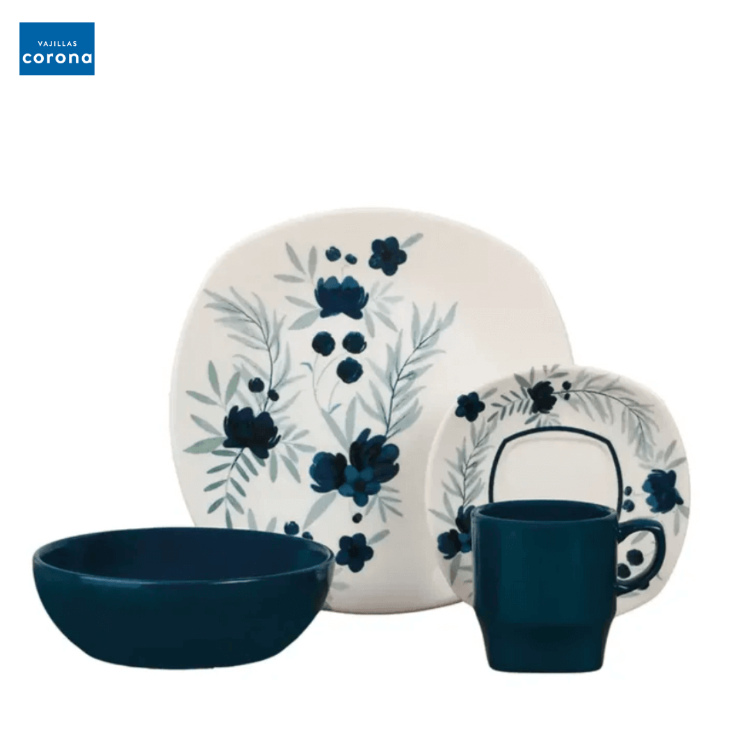 BLANCO CON DETALLES EN AZUL OSCURO Y POCILLO AZUL |