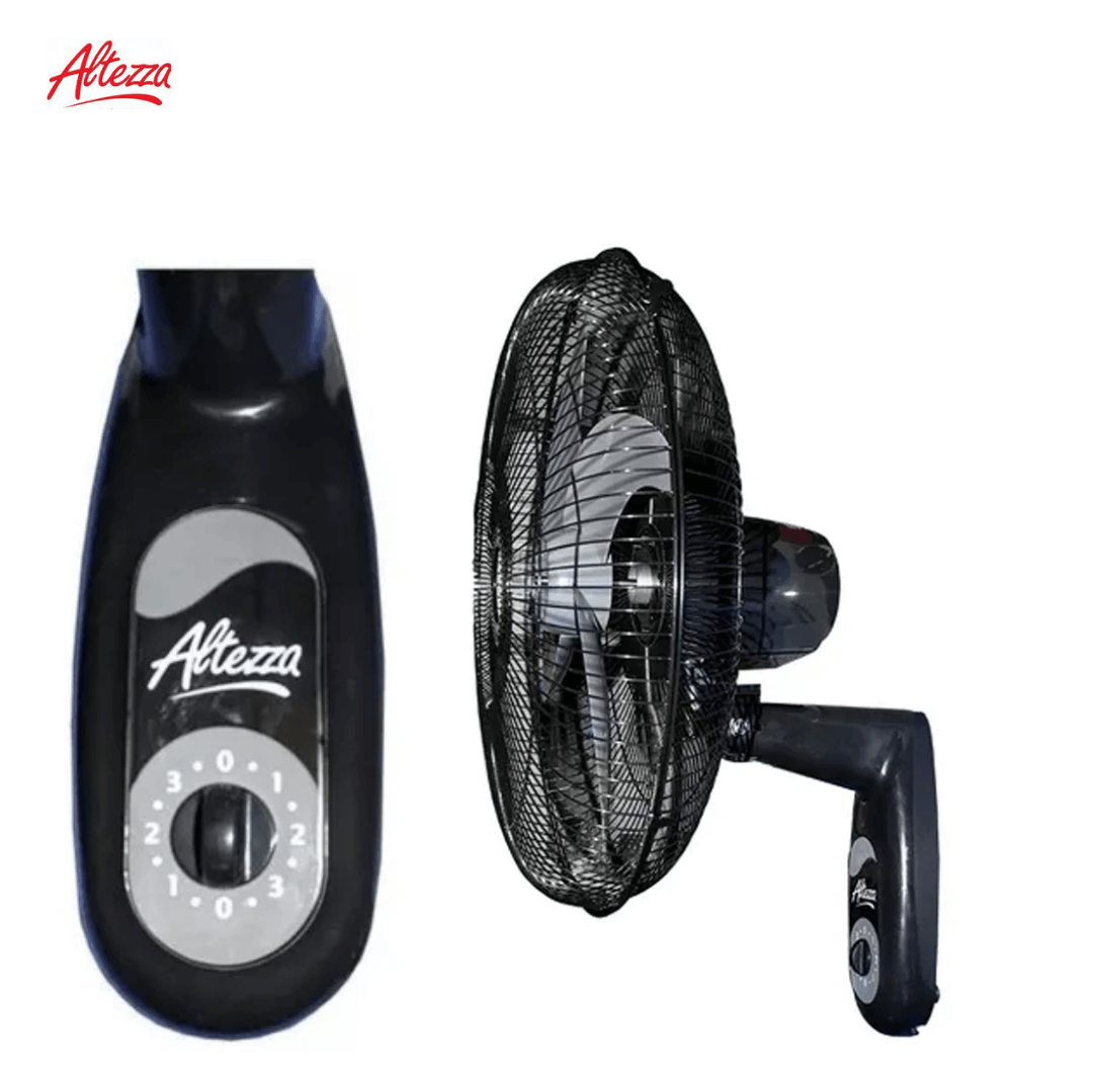 VENTILADOR ALTEZZA PARED NEGRO 18 PULG REF AWF-18BL REF 44247; Diámetro; 50 cm Altura, 45 cm largo, Ancho, 49 cm Peso y 2 kg de color negro de pared 18 pulg, malla metalica aspa gris con 4 helices, con motor de 80 w de doble balinera con base de plastico de alta calidad en polipropileno adaptandose a la pared ideal para refrescar espacios como habitaciones, salas, oficinas y exteriores, el ventilador es de excelente calidad y ofrece una potencia de viento impresionante, ideal para climas cálidos, su instalación es sencilla y su robustez y estabilidad son destacables.